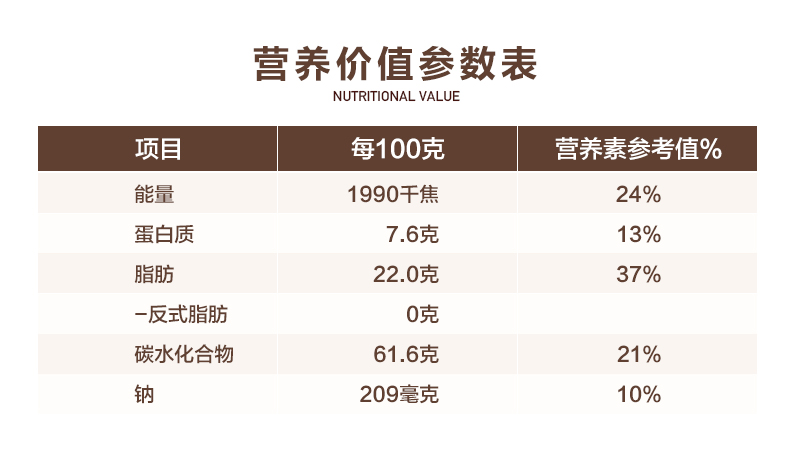 小麥粉、苦蕎粉、葡萄干、紅棗、雞蛋、麥芽糖醇、棕櫚油、食品添加劑(焦磷酸二氫二鈉,碳酸氫鈉,磷酸二氫鈣)、食用鹽