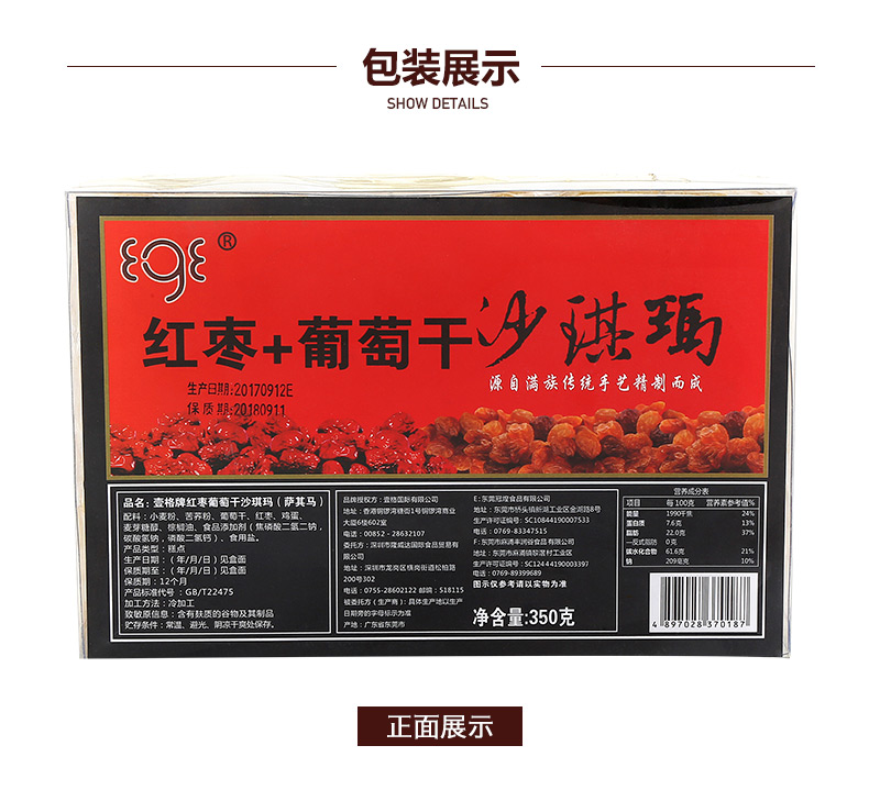 壹格牌紅棗葡萄沙琪瑪-350g